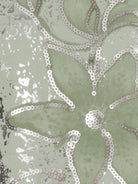 - Design - Grafische bloemenprint met zilverkleurige pailletten en opdruktekst