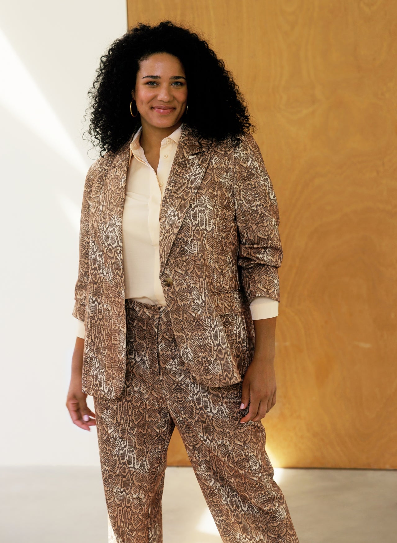 Bruine Blazer met Slangenprint Yest Curve A006114