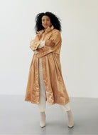 Deze lange Yest Curve Jas A006086 Bruin is perfect voor een casual en moderne look. Je ziet dat de jas is uitgevoerd in een glanzend, geweven materiaal, wat de trenchcoat een moderne uitstraling geeft. Het ontwerp van B Fashion heeft een hoge, staande kraag en lange mouwen. De voorzijde sluit volledig met een ritssluiting die netjes wordt weggewerkt. Om de pasvorm te variëren, kun je het trekkoord in de taille strakker aantrekken. De manchetten zijn afgewerkt met knoopsluitingen.Pasvorm en Stijladvies