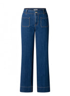 Deze denim pantalon van het merk Yest Curve heeft een casual, rechte pasvorm. De spijkerbroek sluit aan de voorzijde met een ritssluiting en één goudkleurige knoop. Aan de voorkant zie je twee opgestikte zakken, waarbij de naden zijn afgewerkt met contrasterende stiksels. Dit model bevat ook twee opgestikte achterzakken en een brede zoom aan de onderkant van de pijpen. Deze jeans is makkelijk te combineren voor je dagelijkse look.Pasvorm en Stijladvies