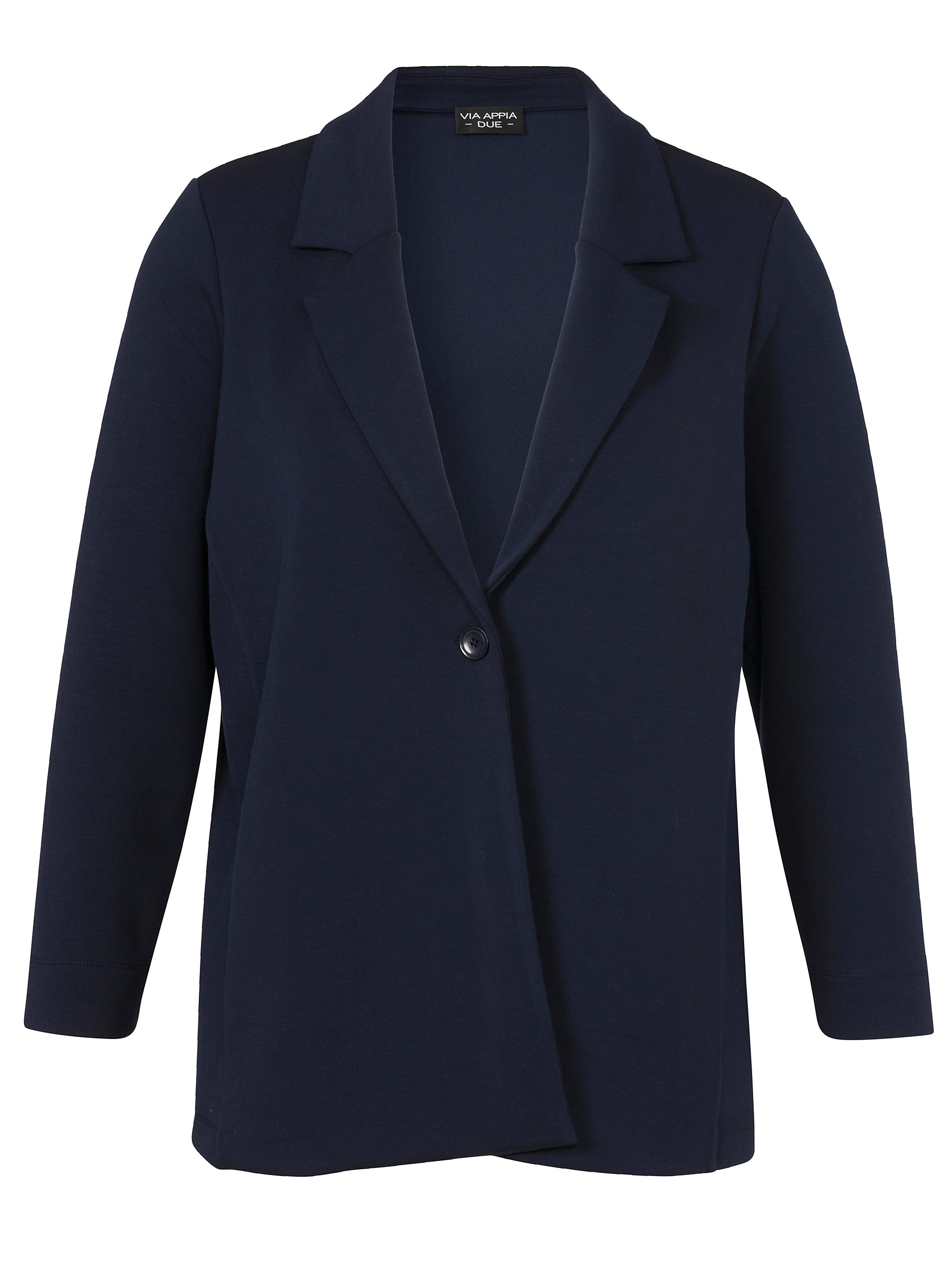 Dit marine dames jack van Via Appia Due, model 2611712, is een casual jasje dat sluit met een enkele knoop aan de voorzijde. Dit comfortabele item heeft een klassieke reverskraag en lange mouwen. De effen donkerblauwe kleur maakt dit jack makkelijk te combineren voor verschillende gelegenheden. Het is bovenkleding die je een verzorgde uitstraling geeft.