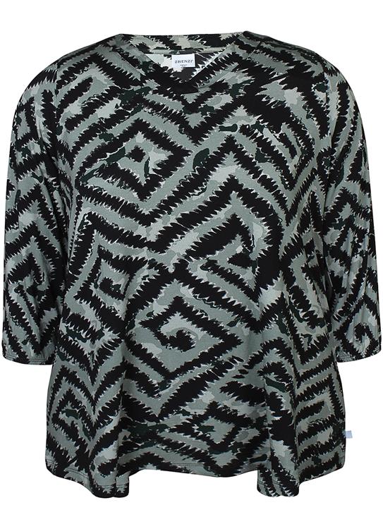 De Zhenzi blouse valt soepel en is ontworpen voor een casual pasvorm. Je combineert deze opvallende top gemakkelijk met een effen zwarte broek of een moderne jegging. Ontdek meer casual mode in grote maten van het merk Zhenzi.Productkenmerken