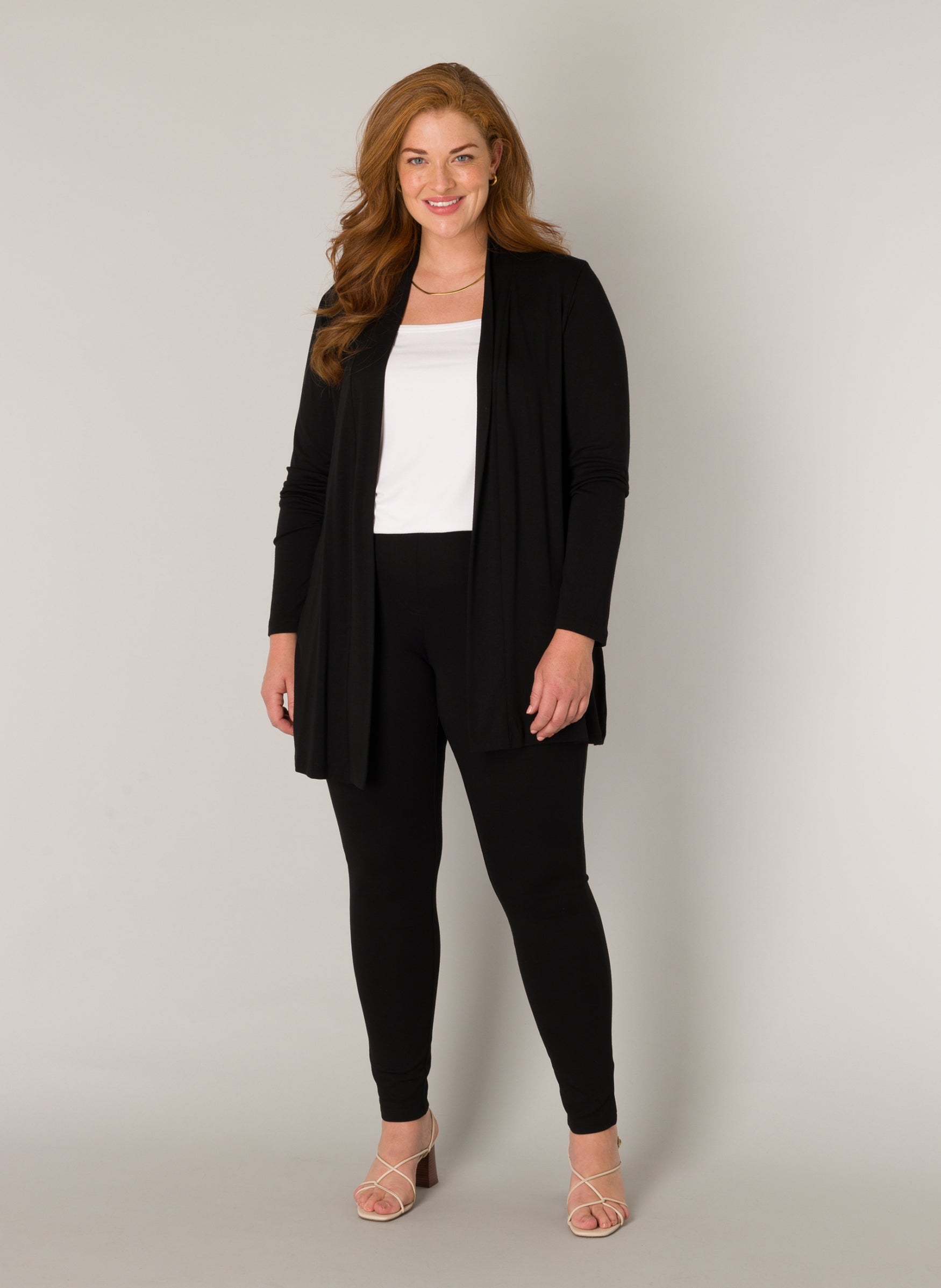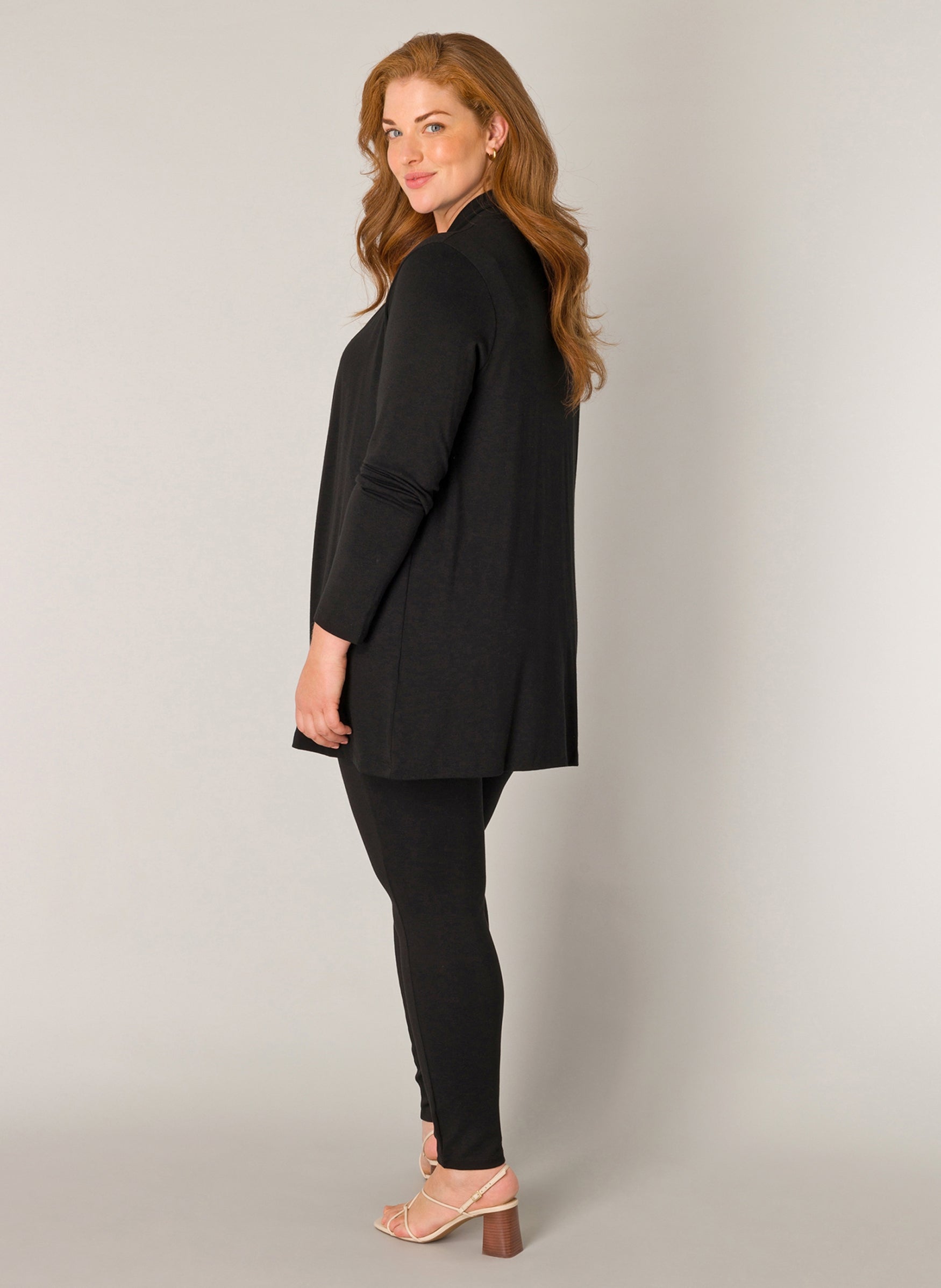 De pasvorm is soepel en valt losjes langs het lichaam. Combineer dit zwarte lange vest met een strakke broek en een effen top voor een vlotte outfit. Bekijk de gehele collectie van Base level curvy kleding voor meer opties.