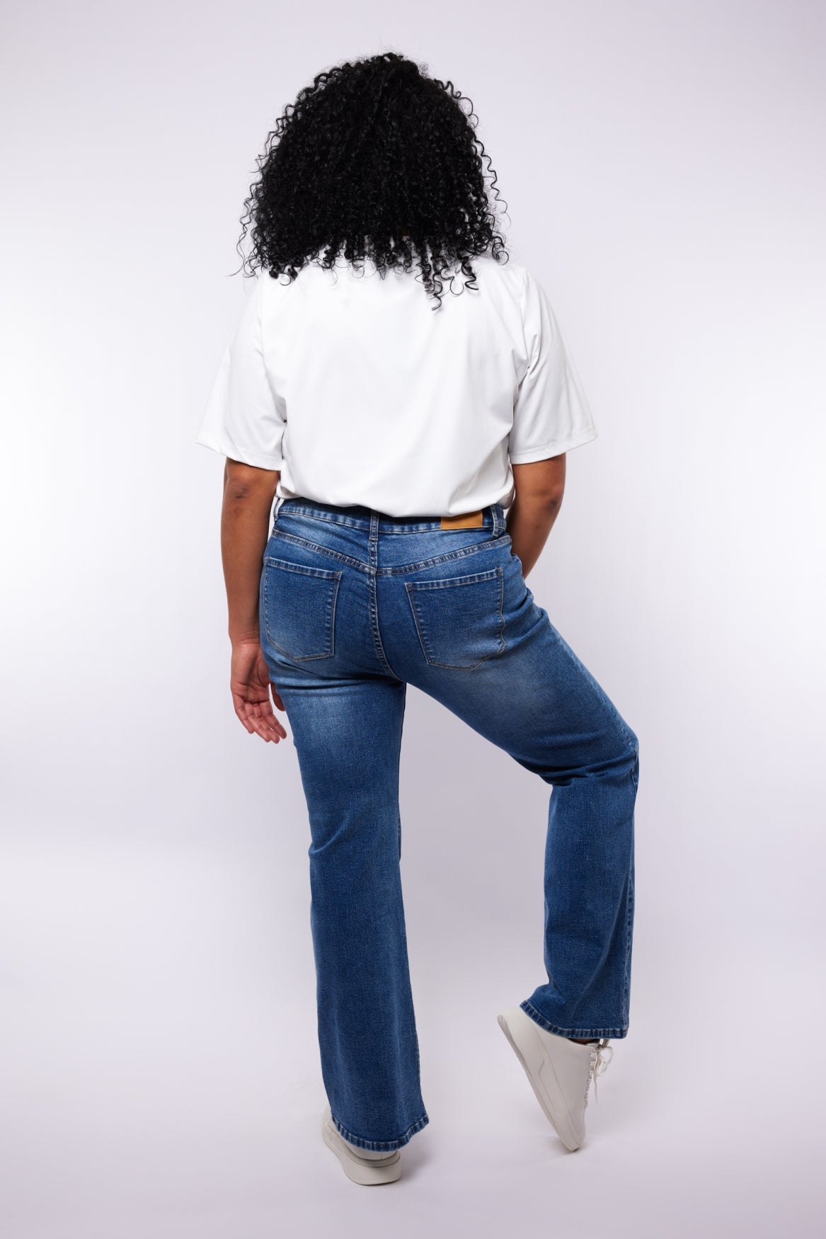 Je combineert deze denim broek gemakkelijk met verschillende items. Ga voor een relaxte uitstraling door deze wijd uitlopende jeans te dragen met een eenvoudige witte T-shirt en sneakers. Voor een complete look van het merk bekijk je de collectie grote maten mode van Exxcellent.