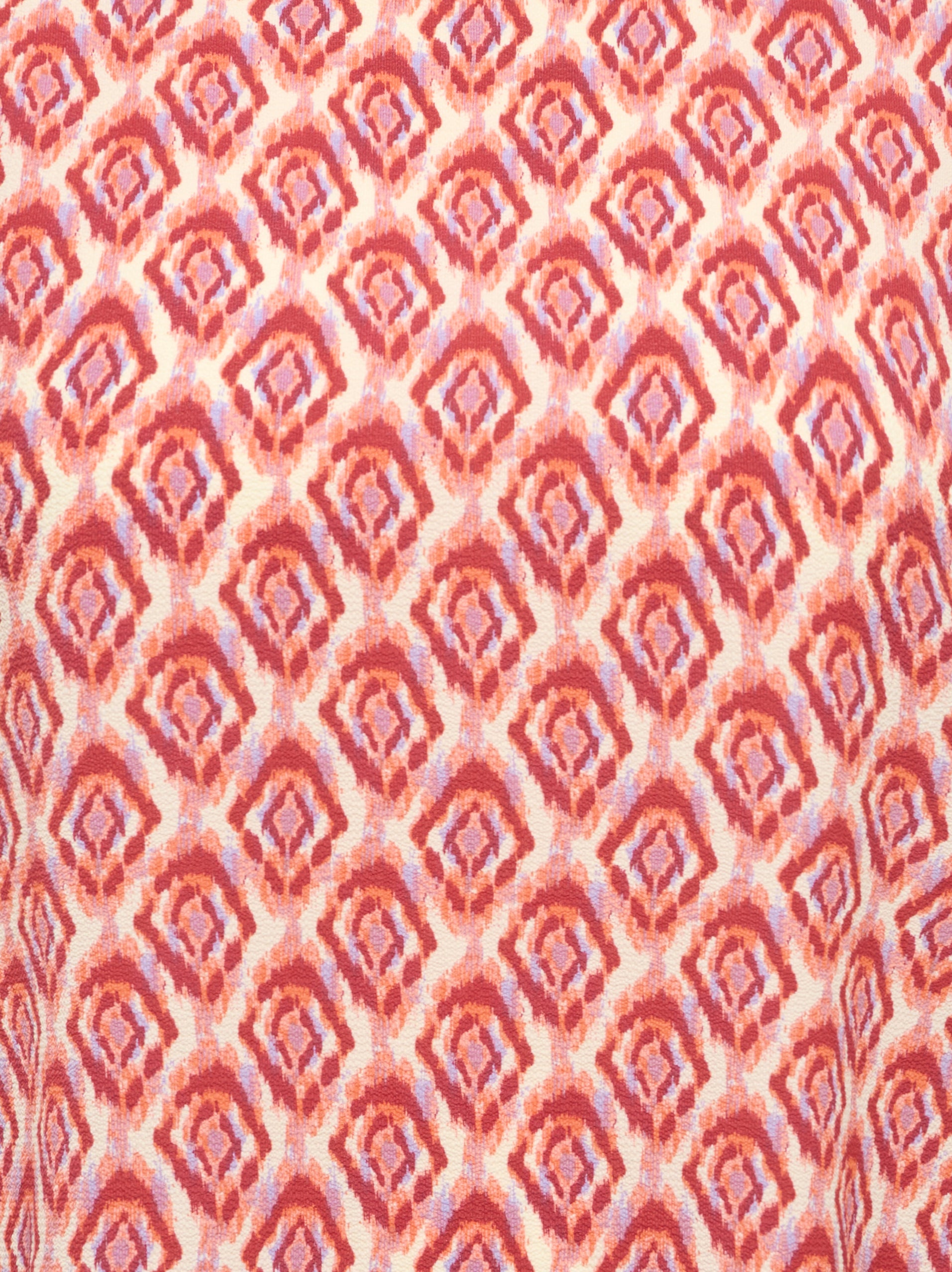 Deze Only Carmakoma jurk is uitgevoerd in een all-over geometrisch ruitdessin. Het kleurgebruik combineert tinten Equestrian Red met het lichtere Warm Tiles, wat zorgt voor een opvallende uitstraling. Je merkt direct dat dit kledingstuk gemaakt is voor een casual look. De jurk heeft een comfortabele pasvorm en is voorzien van een stof met een geweven structuur, perfect voor dagelijks draagcomfort.