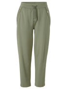De Via Appia Due capribroek, model 2611489, heeft een casual en moderne uitstraling. Deze korte broek in de kleur salbei is uitgevoerd in een zachte stretchstof. Je ziet twee schuine ritszakken aan de voorzijde. De taille is voorzien van een elastische band met een verstelbaar trekkoord, wat zorgt voor een comfortabele pasvorm. Deze comfortabele damesbroek valt cropped.Pasvorm en Stijladvies