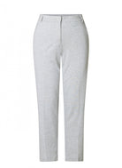 Deze lichtgrijze pantalon van Yest Curve is een casual damesbroek uitgevoerd in een melange structuur. Het kledingstuk heeft een sluiting met een rits, knoop en haaksluiting aan de bovenzijde. De pantalon is ontworpen met een rechte pasvorm en heeft duidelijke verticale stiksels aan de voorzijde van de broekspijpen. De tailleband is afgewerkt met subtiele riemlussen. Deze broek biedt je een comfortabele basis voor je dagelijkse kledingkeuze.