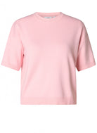 De Yest Curve gebreide top is uitgevoerd in een effen lichtroze kleur. Deze casual kortemouw trui heeft een klassieke ronde halslijn. De boorden bij de hals, mouwen en de onderkant zijn voorzien van een geribbelde afwerking. Dit losvallende model van het merk Yest Curve is een luchtige sweater voor dagelijks gebruik.