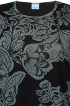 Deze Zhenzi blouse is uitgevoerd in een zwarte tricot stof met een allover bloemenprint in grijs en lichtgroen. De top heeft lange, transparante mouwen van mesh en is voorzien van een comfortabele ronde halslijn. De mouwuiteinden en de zoom aan de onderzijde zijn elastisch afgewerkt. Deze dames top met print is ontworpen als een casual item en past goed in jouw dagelijkse kledingcollectie.
