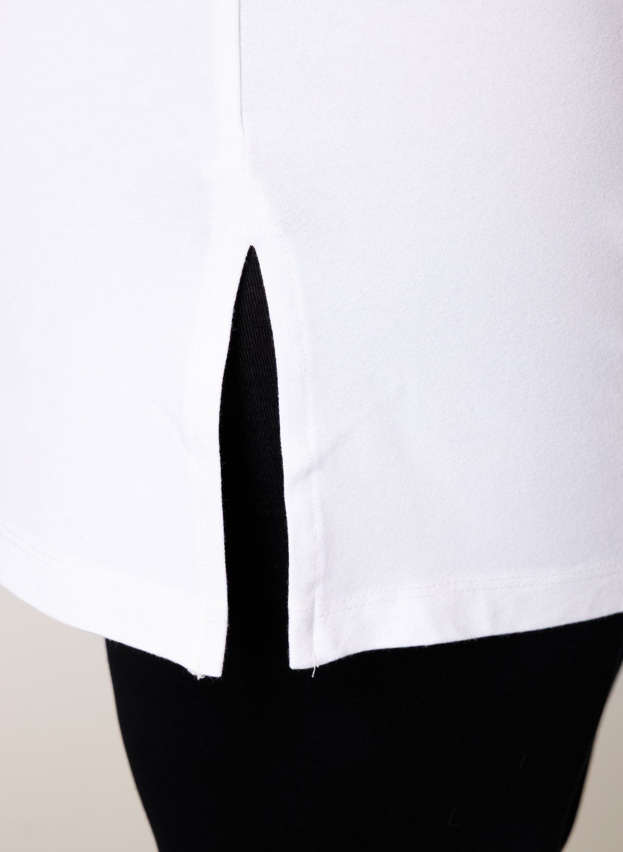 Deze lange basistop is gemakkelijk te combineren en draag je ideaal over een strakke broek of legging. De langere lengte zorgt ervoor dat de heupen bedekt zijn, wat bijdraagt aan een comfortabele uitstraling. Combineer de witte top met een donkere jeans of een pantalon voor een casual, alledaagse look. Bekijk alle bijpassende items van Base level curvy voor een complete outfit.