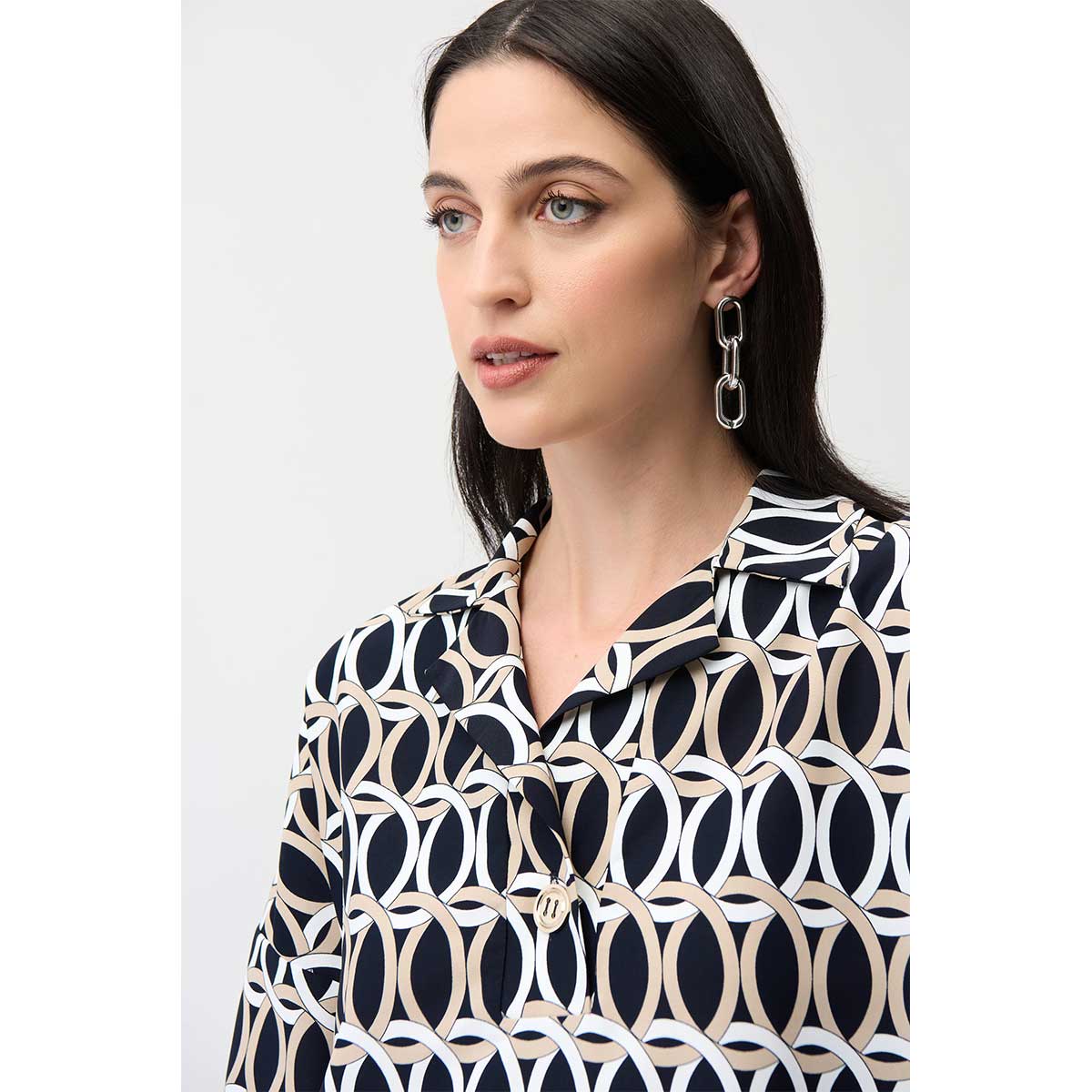 Deze ruime Joseph Ribkoff blouse combineer je gemakkelijk voor een casual en toegankelijke uitstraling. Voor een complete set, draag je dit shirt met de bijpassende broek. Je kunt deze geometrische top ook stylen met een effen witte of donkerblauwe pantalon voor een nuchtere, maar moderne look. Bekijk de gehele collectie van Joseph Ribkoff kleding voor meer inspiratie.Productkenmerken