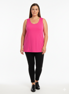 Combineer deze donkerroze tank top met een strakke zwarte broek, zoals op de foto te zien is, voor een casual en vrolijke outfit. Voor een complete collectie en meer grote maten kleding kun je terecht bij de andere items van Only M.