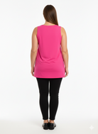 De Only M Top SC.TOP.001ADG Donkerroze is een casual dames top met een effen dessin. Deze mouwloze top, uitgevoerd in een heldere donkerroze kleur, heeft een klassieke ronde hals en valt over de heupen. De voorkant van deze tank top is voorzien van subtiele verticale deelnaden die zorgen voor een nette afwerking. Dit is een comfortabel item van Only M voor je dagelijkse, optimistische look.