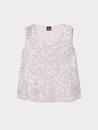 Deze mouwloze top van Persone by Marina Rinaldi is voorzien van een all-over pailletten design in de kleur Lila. De dames top heeft een klassieke ronde halslijn en een rechte pasvorm. Dit elegante kledingstuk is volledig gevoerd en biedt een comfortabele basis die je makkelijk stylet voor diverse gelegenheden. Dit ontwerp combineert de casual uitstraling van een tank top met een moderne, feestelijke twist.