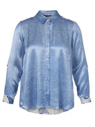 Deze damesblouse van Via Appia Due onderscheidt zich door het tweezijdige ontwerp. De voorzijde en lange mouwen van dit casual shirt zijn uitgevoerd in een subtiel diagonaal dessin in blauwe tinten. Het kledingstuk is voorzien van een klassieke puntenkraag en sluiting met doorlopende knopen. De achterkant van het overhemd is uitgevoerd in een dessin van paisleyprint op een gestreepte ondergrond. Dit item is geschikt voor het creëren van een opgewekte uitstraling.Pasvorm en Stijladvies