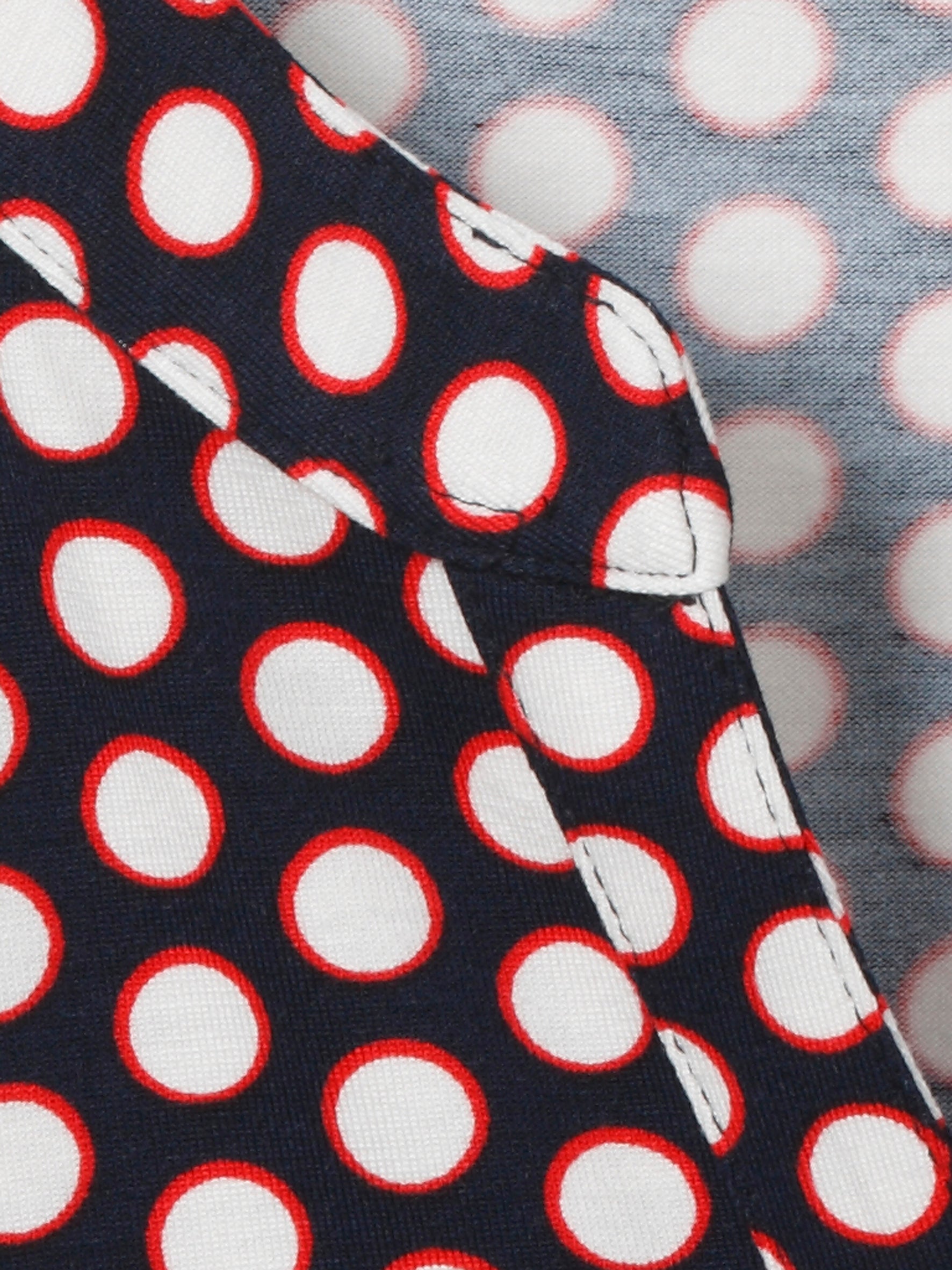 - Design - Polkadot print met rode randen, gestreepte boorden