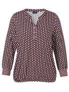 Dit casual T-shirt van Via Appia Due is uitgevoerd in een marine basiskleur met een multicolor polkadot dessin. Het lange mouwen shirt heeft een V-hals en een korte knoopsluiting met drie knopen. De lange mouwen zijn afgewerkt met gestreepte boorden bij de manchetten en het model beschikt over een elastische zoom aan de onderkant.