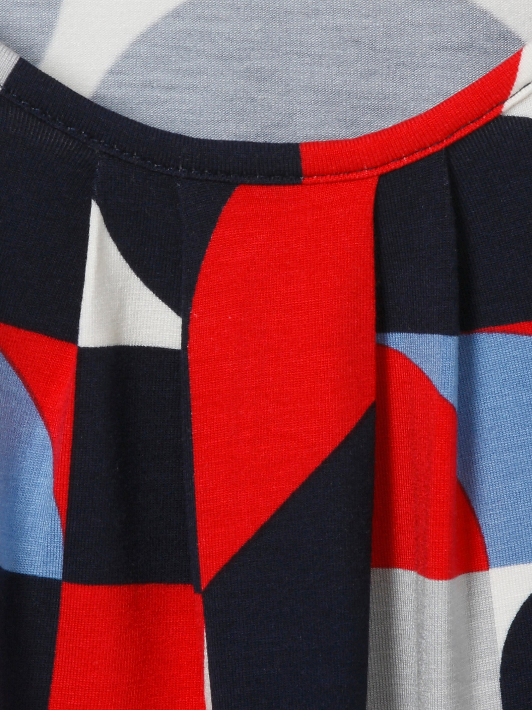 Dit shirt met print van Via Appia Due (2621420) valt op door zijn rood multicolour design. Dit T-shirt is voorzien van een abstract geometrisch dessin in de kleuren rood, wit, navyblauw en grijs. Het damesshirt heeft een ronde hals, afgewerkt met een smalle boord. De plooien bij de halslijn zorgen voor een soepele pasvorm en een comfortabel gevoel tijdens het dragen.