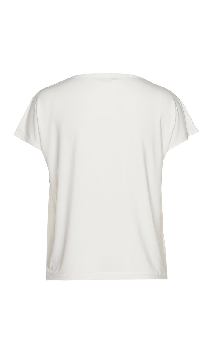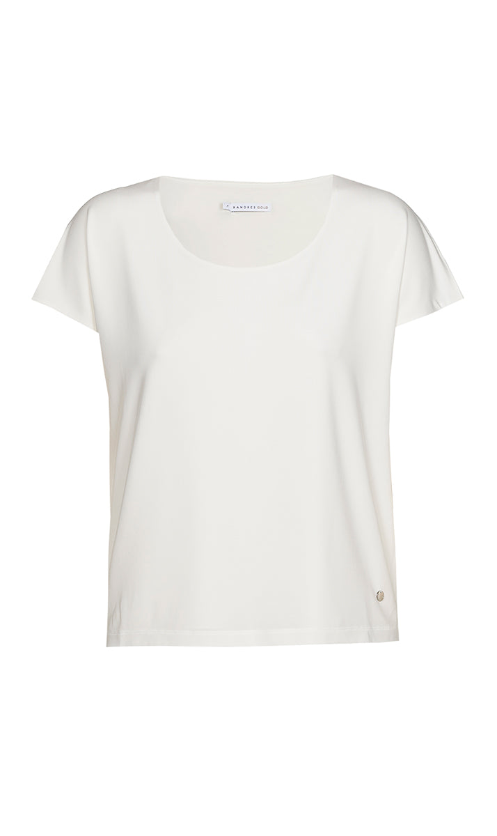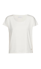 Dit casual T-shirt van Xandres is uitgevoerd in een egale roomwitte kleur en heeft korte aangeknipte mouwen en een ronde halslijn. Dit dames shirt heeft een rechte pasvorm en is afgewerkt met een kleine, zilverkleurige metalen badge op de linkerzoom. Het ontwerp van deze Xandres top is een ideale basis voor je dagelijkse look.Pasvorm en Stijladvies