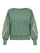 De pasvorm van deze Only Carmakoma trui is relaxed. De elastische boorden bij de polsen zorgen ervoor dat de ballonmouwen mooi op hun plaats blijven. Combineer deze groene geborduurde sweater met een donkere jeans of een neutrale chino voor een toegankelijke, casual uitstraling.Productkenmerken