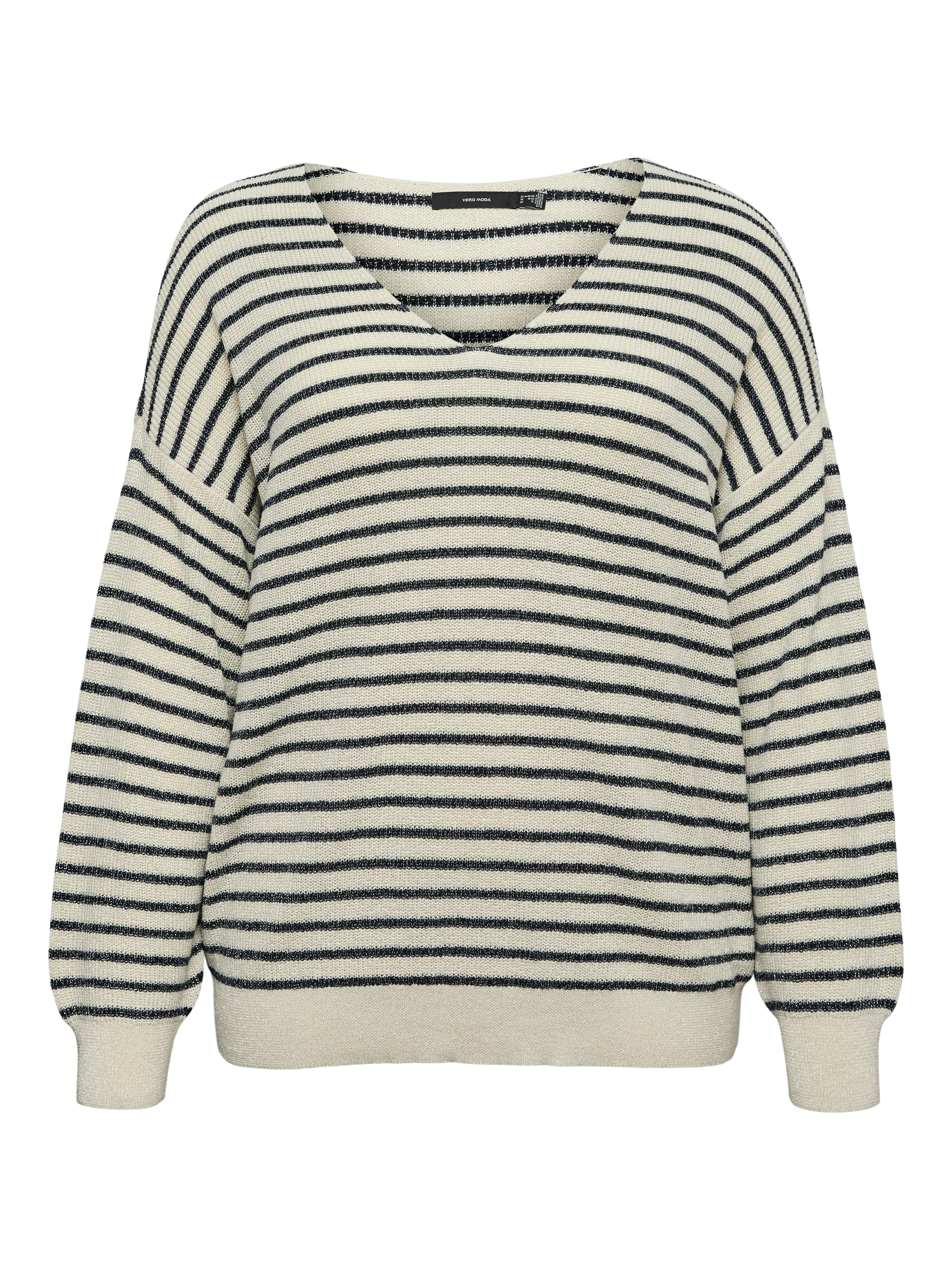 Wil je deze Vero Moda Curve trui casual stylen? Je kunt dit gestreepte item goed combineren met een donkere denim of een effen gekleurde pantalon voor een nuchtere, moderne uitstraling. De relaxte fit van deze trui biedt veel draagcomfort. Ontdek de complete Vero Moda Curve collectie voor meer opties in jouw maat.Productkenmerken