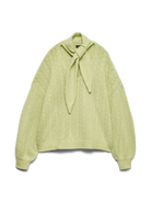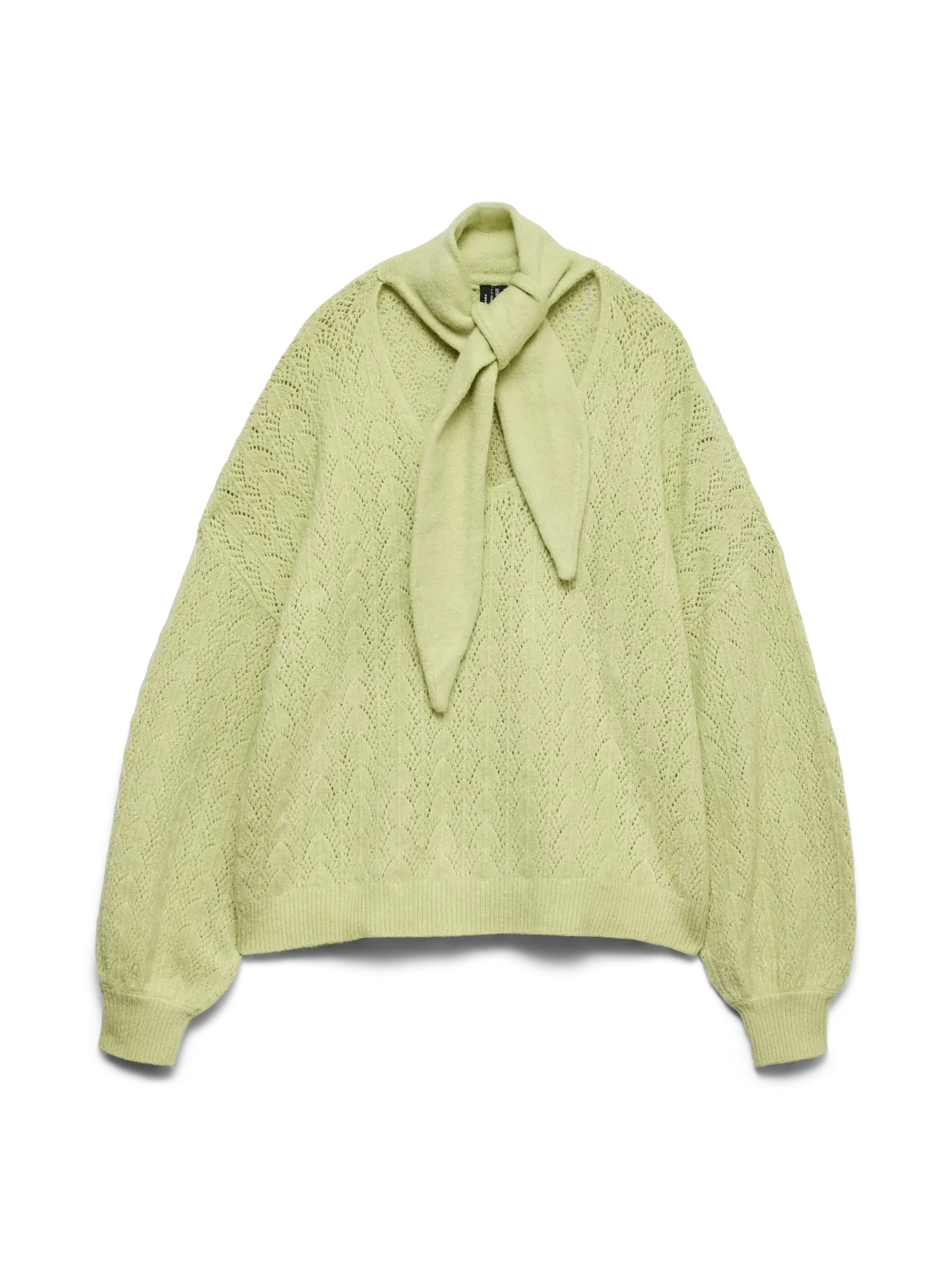 Deze gebreide trui van Vero Moda Curve in de kleur Winter Pear is uitgevoerd met een opengewerkt ruitpatroon. Het kledingstuk is afgewerkt met lange, ballonvormige mouwen die eindigen in een brede, aansluitende boord. De V-halslijn is voorzien van een lange, afneembare sjaal die je los of als strik kunt dragen. De gebreide sweater heeft een rechte zoom en is gemaakt van een zachte garenmix, wat bijdraagt aan een optimaal draagcomfort.