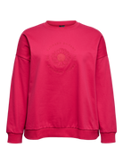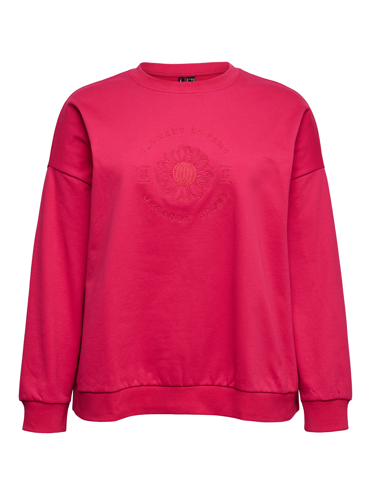 Deze Vero Moda Curve sweatshirt is uitgevoerd in de heldere kleur Jazzy en heeft een casual pasvorm met lange, ingezette mouwen en een ronde hals. De sweater is voorzien van een subtiele reliëfopdruk middenvoor. Dit design bestaat uit de woorden ‘FLOWERY BOTANY’ en ‘ORGANIC STORE’, die een gestileerd bloemmotief omringen. De boorden bij de hals, mouwen en onderzijde zijn uitgevoerd in ribgebreide stof. Dit kledingstuk is een comfortabele toevoeging aan je garderobe en onderdeel van de Bestseller collectie.
