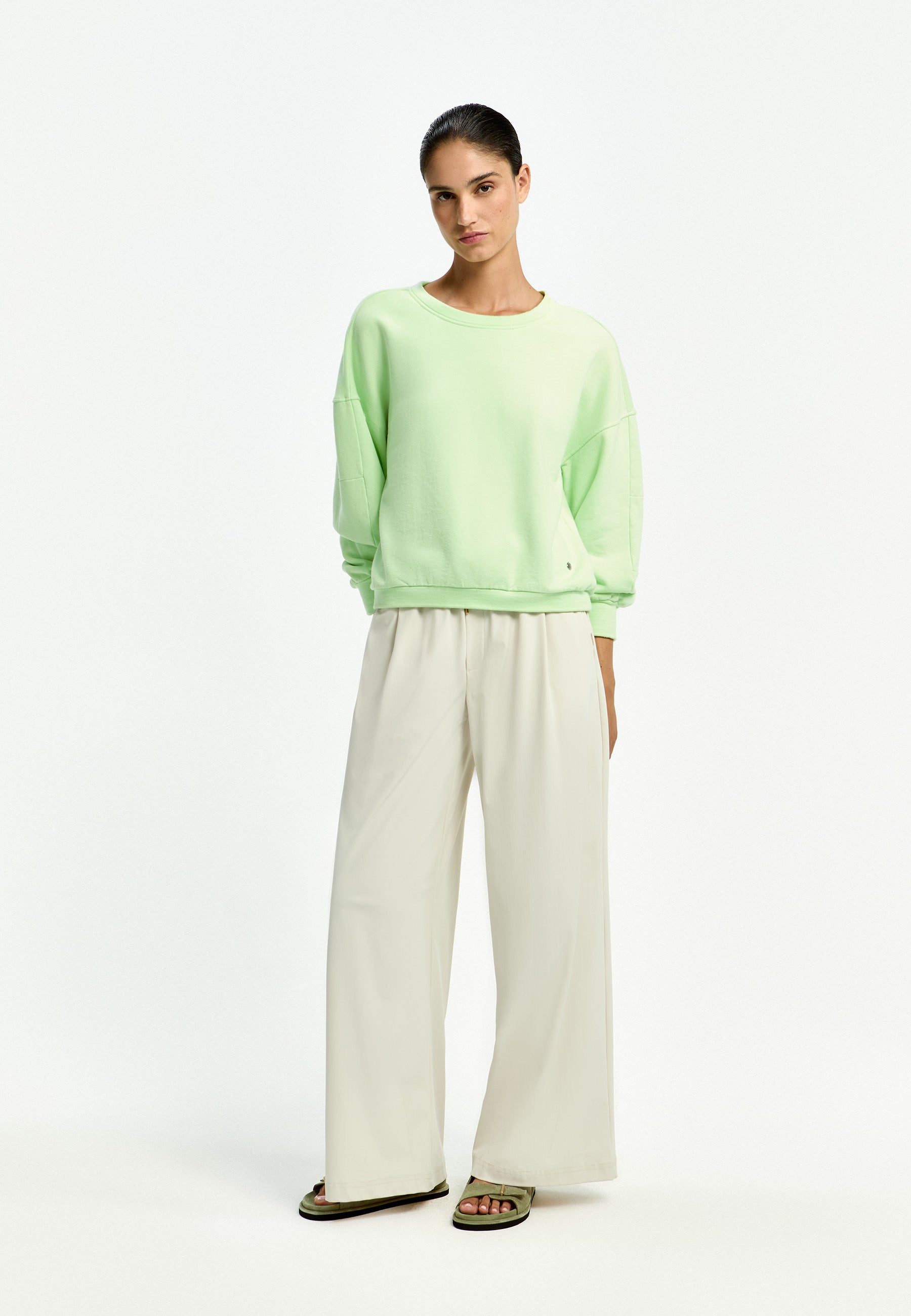 De ruime, relaxed fit van deze trui zorgt voor veel draagcomfort. Je combineert de lichtgroene sweater makkelijk met een neutrale onderkant, zoals een crème of witte pantalon, voor een frisse, casual look. Wil je meer kleding van Xandres zien, bekijk dan de gehele collectie van dit merk.
