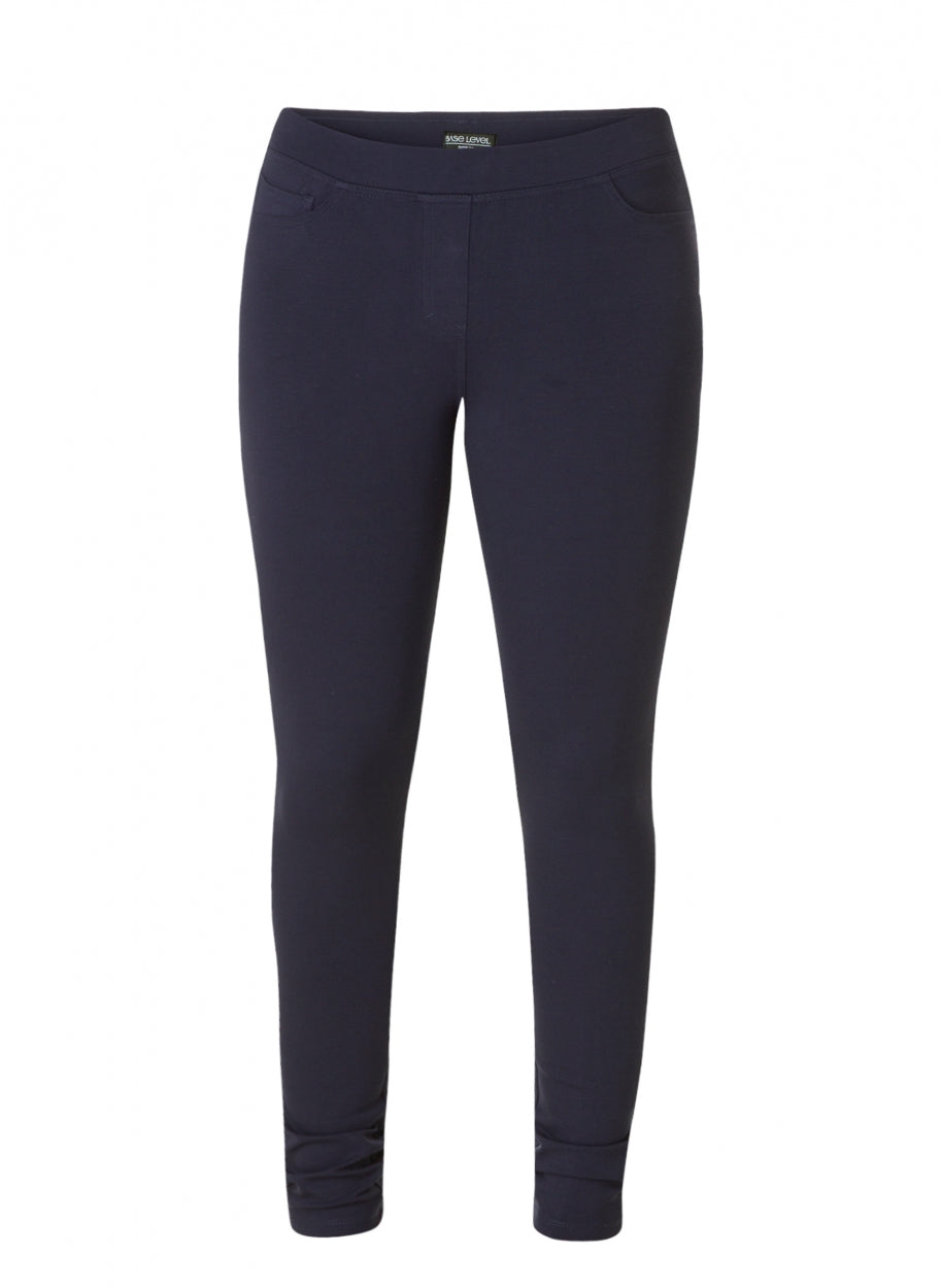 Deze donkerblauwe stretchbroek is de Base level curvy Legging 7000005, ontworpen voor een comfortabele en nauwsluitende pasvorm. De tregging heeft een effen design en wordt gekenmerkt door een volledig elastische tailleband. Je ziet aan de voorzijde twee steekzakken die een casual uitstraling bieden. Dit Base level curvy model volgt de contouren van je lichaam en is een ideale basis voor je dagelijkse garderobe.