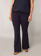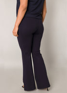 Deze Base level curvy Legging in diep Blauw is een comfortabele broek die je gemakkelijk aantrekt. De donkerblauwe pantalon heeft een aansluitende pasvorm op het bovenbeen met wijde pijpen vanaf de knie, wat zorgt voor een moderne flared look. De elastische tailleband zorgt voor draagcomfort en het model beschikt over twee subtiele steekzakken aan de voorzijde. Deze curvy fit broek van Base level curvy biedt een zachte en casual basis voor jouw dagelijkse outfit.