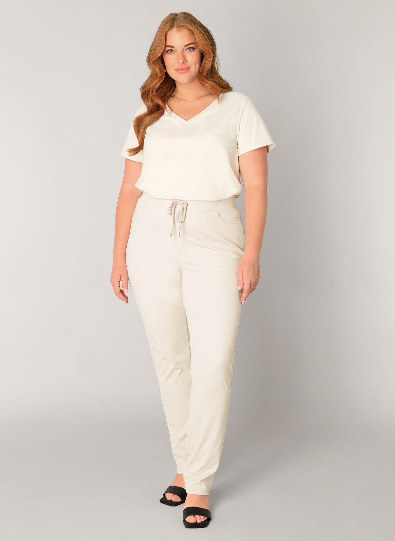 De pasvorm sluit comfortabel aan en volgt de lijnen van het lichaam. Combineer deze broek gemakkelijk met een T-shirt of een ruimvallende blouse voor een ontspannen, casual uitstraling. Bekijk meer kleding in curvy maten van Base level curvy.Productkenmerken