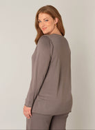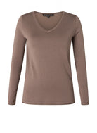 Dit Base level curvy longsleeve T-shirt in de kleur Taupe is uitgevoerd met een V-hals en lange mouwen. Het T-shirt heeft een fijngebreide structuur. Deze top van Base level curvy kenmerkt zich door de soepele stof en de comfortabele, rechte pasvorm. Dit taupe T-shirt is een veelzijdige longsleeve voor een casual look.Pasvorm en Stijladvies