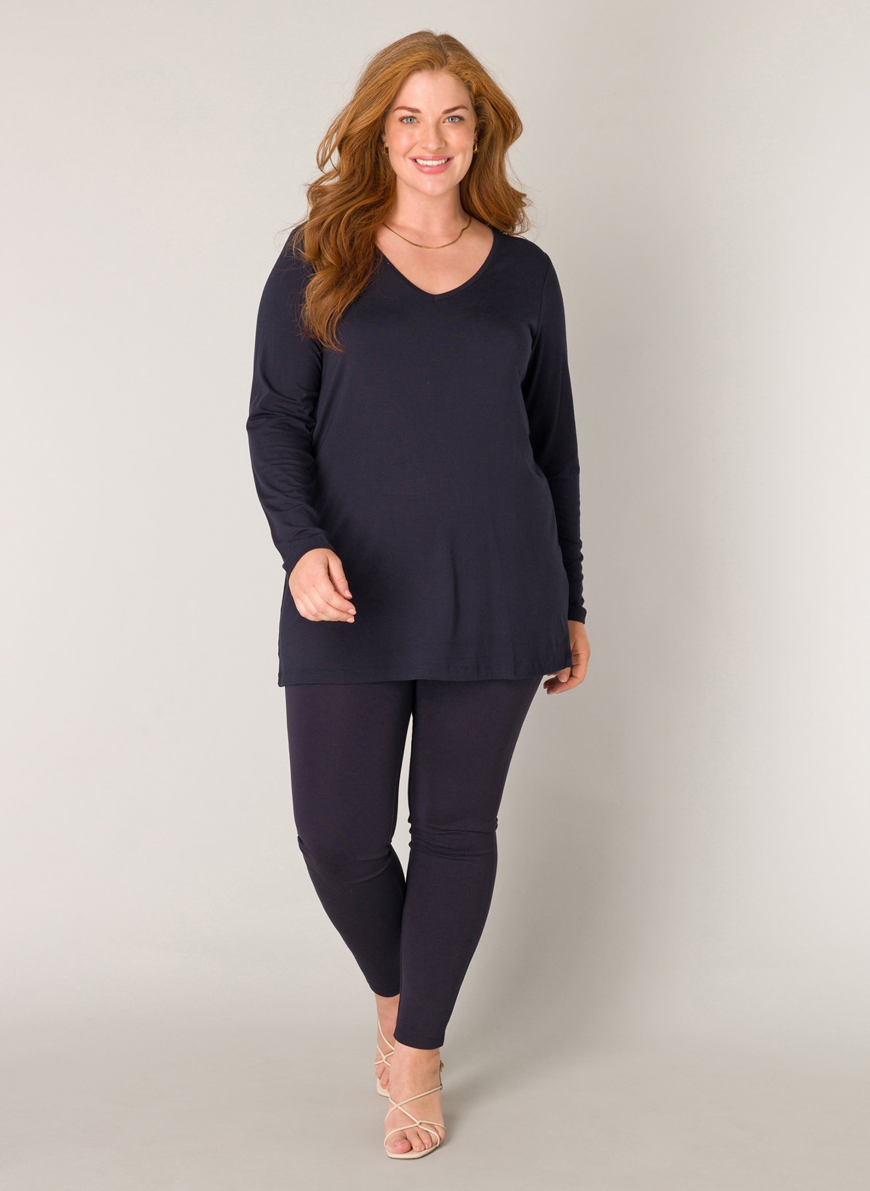 Base level curvy T-Shirt met Lange Mouw Donkerblauw