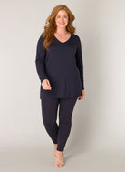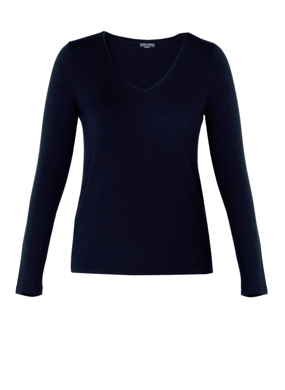 Dit donkerblauwe T-shirt met lange mouw van Base level curvy is een casual basisstuk voor je garderobe. Het Base level curvy LM T-Shirt 7000036 Donkerblauw heeft een effen design en een klassieke V-hals. Door de lange mouwen en de ruime pasvorm is dit longsleeve shirt een comfortabele keuze voor dagelijks gebruik. De stof valt soepel om het lichaam.