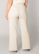 Deze Base level curvy dames pantalon in de kleur Zand heeft een comfortabele pasvorm met wijde, lange pijpen. De broek sluit aan de voorzijde met een rits en een blinde haaksluiting. Aan beide zijkanten zijn steekzakken aangebracht. Deze pantalon is gemaakt van een soepele stof met stretch en valt hoog in de taille.