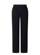 De Base level curvy zwarte pantalon is uitgevoerd met een rechte, brede pijp en een hoge taille. Deze dames pantalon is voorzien van een functionele rits en een enkele knoopsluiting aan de voorzijde. De Base level curvy broek heeft twee steekzakken aan de zijkanten en subtiele riemlussen langs de tailleband. De effen zwarte kleur maakt deze casual broek voor dames een veelzijdige toevoeging aan je garderobe.Pasvorm en Stijladvies