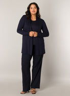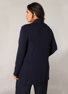 Dit dames vest valt soepel en is ideaal om over een T-shirt of blouse te dragen. Door de open kraag en de effen donkerblauwe kleur kun je dit vest makkelijk combineren met lichte en donkere tinten. Voor een complete, casual look draag je het als een comfortabele set met een bijpassende broek of T-shirt van Base level curvy.Productkenmerken