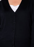 Dit donkerblauwe gebreide vest van Base level curvy heeft een effen dessin en is voorzien van een V-hals. Het kledingstuk sluit aan de voorzijde met een verticale rij van vijf ronde knopen. Dit Base level curvy damesvest is een casual toevoeging aan je garderobe. De lange mouwen en de fijne tricot maken dit vest een comfortabel en veelzijdig kledingstuk.