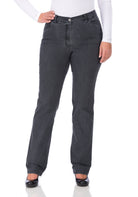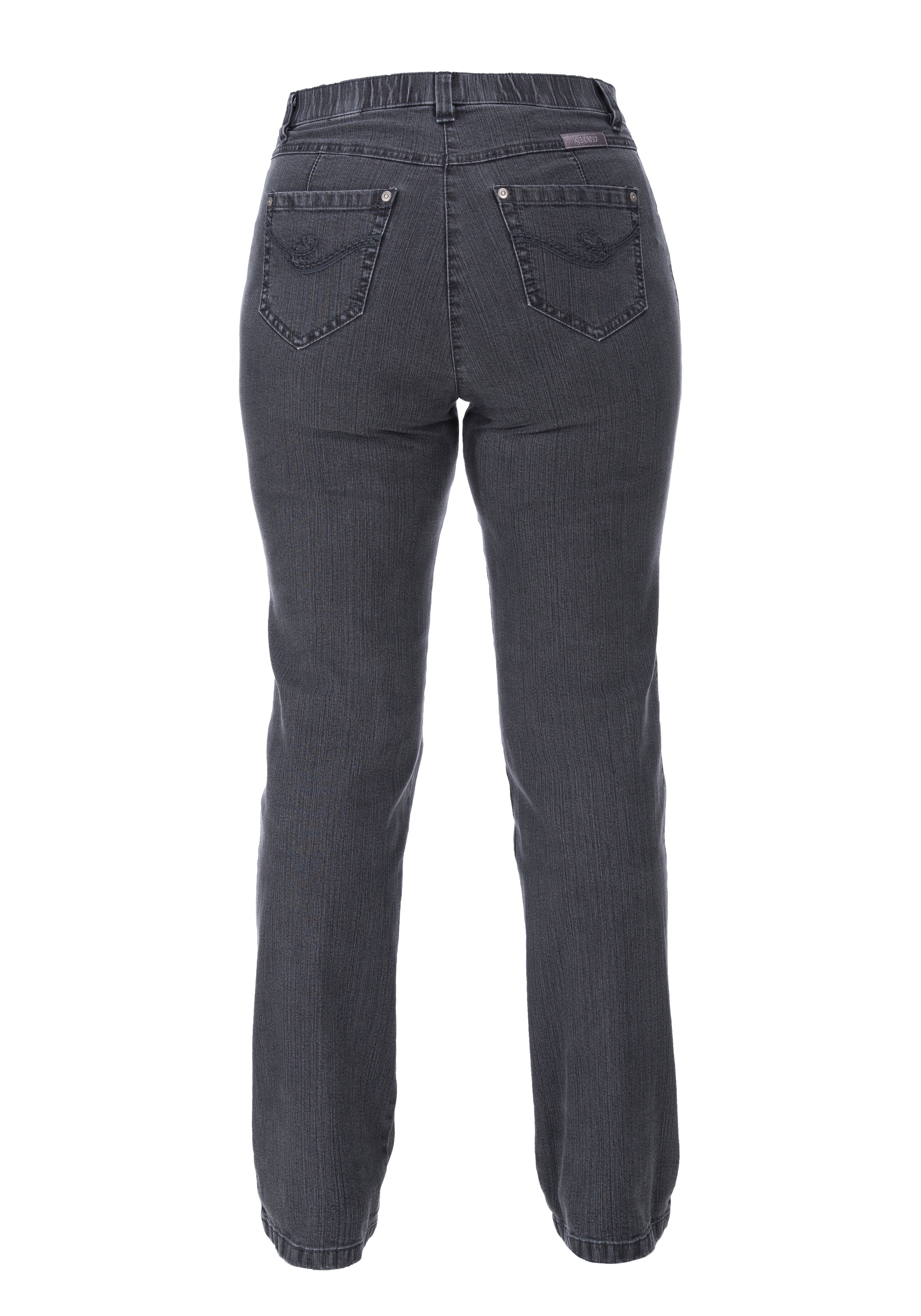 Deze straight leg spijkerbroek 24618 van Brand is uitgevoerd in een diepe grijze kleur en heeft een klassieke pasvorm. De broek heeft een sluiting aan de voorzijde door middel van een knoop en een ritssluiting. Aan de voorzijde zitten twee steekzakken en de achterzijde is voorzien van twee opgestikte achterzakken met sierstiksels. De tailleband is deels elastisch, waardoor deze comfortabele broek fijn aansluit.