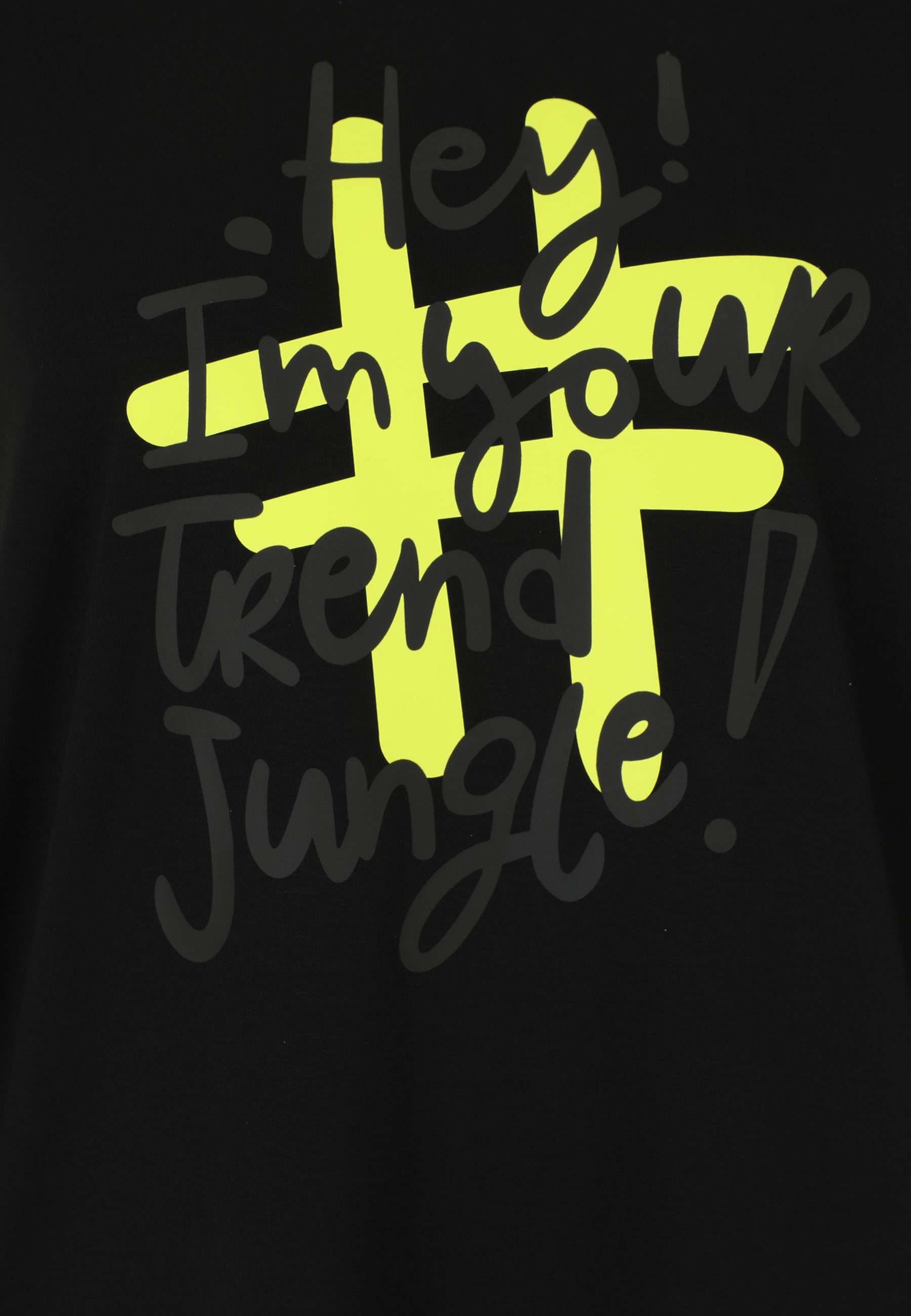 Dit zwarte Doris Streich T-shirt 561 270 is voorzien van een comfortabele pasvorm. Het dames shirt heeft korte mouwen en een ronde hals. Op de voorzijde is een opvallende print aangebracht. De print bestaat uit een groot neongroen hekje (#) met de tekst ‘Hey! I’m your Trend Jungle!’ eroverheen in een donkergrijze opdruk. Dit T-shirt van Doris Streich is ideaal voor een casual uitstraling.Pasvorm en Stijladvies