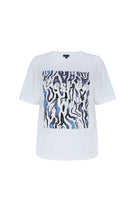 Dit Roomwitte T-shirt van Exxcellent heeft korte mouwen en een klassieke ronde hals. De voorzijde is voorzien van een grote, rechthoekige print. Dit dessin toont een abstracte zebra-achtige structuur in tinten blauw, paars en zwart. Over deze moderne opdruk staat de tekst 'COST OF LIVING' in witte, licht opstaande letters. Dit casual shirt is een fijne basisitem voor je dagelijkse garderobe.