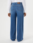 Deze Marina Sport broek is uitgevoerd in gewassen denim. Het model is ontworpen met een wide-leg pasvorm en een hoge taille. Je ziet twee opgestikte achterzakken en een contrasterende lederen patch op de achterste tailleband. Deze casual denim jeans valt in een rechte, extra wijde lijn over de benen.