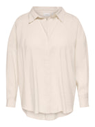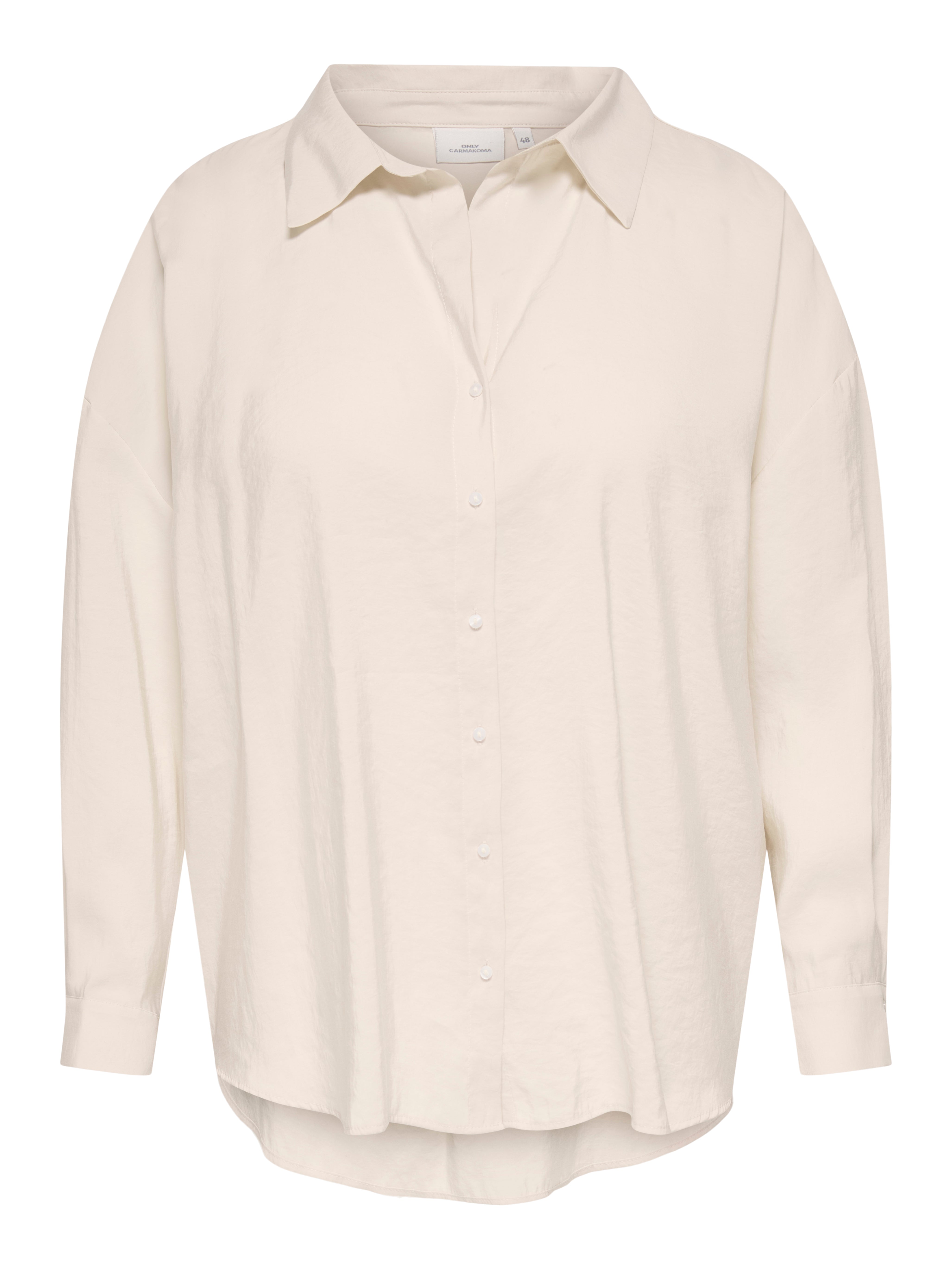 Deze casual damesblouse van Only Carmakoma heeft een effen Antique White kleurstelling. De ruime snit en lange mouwen zorgen voor een comfortabele pasvorm. De katoen-look blouse is voorzien van een klassieke overhemdkraag en een doorlopende knoopsluiting aan de voorzijde. De manchetten zijn afgewerkt met een enkele knoop. De lichte textuur van de stof geeft de overhemdblouse een moderne uitstraling.Pasvorm en Stijladvies