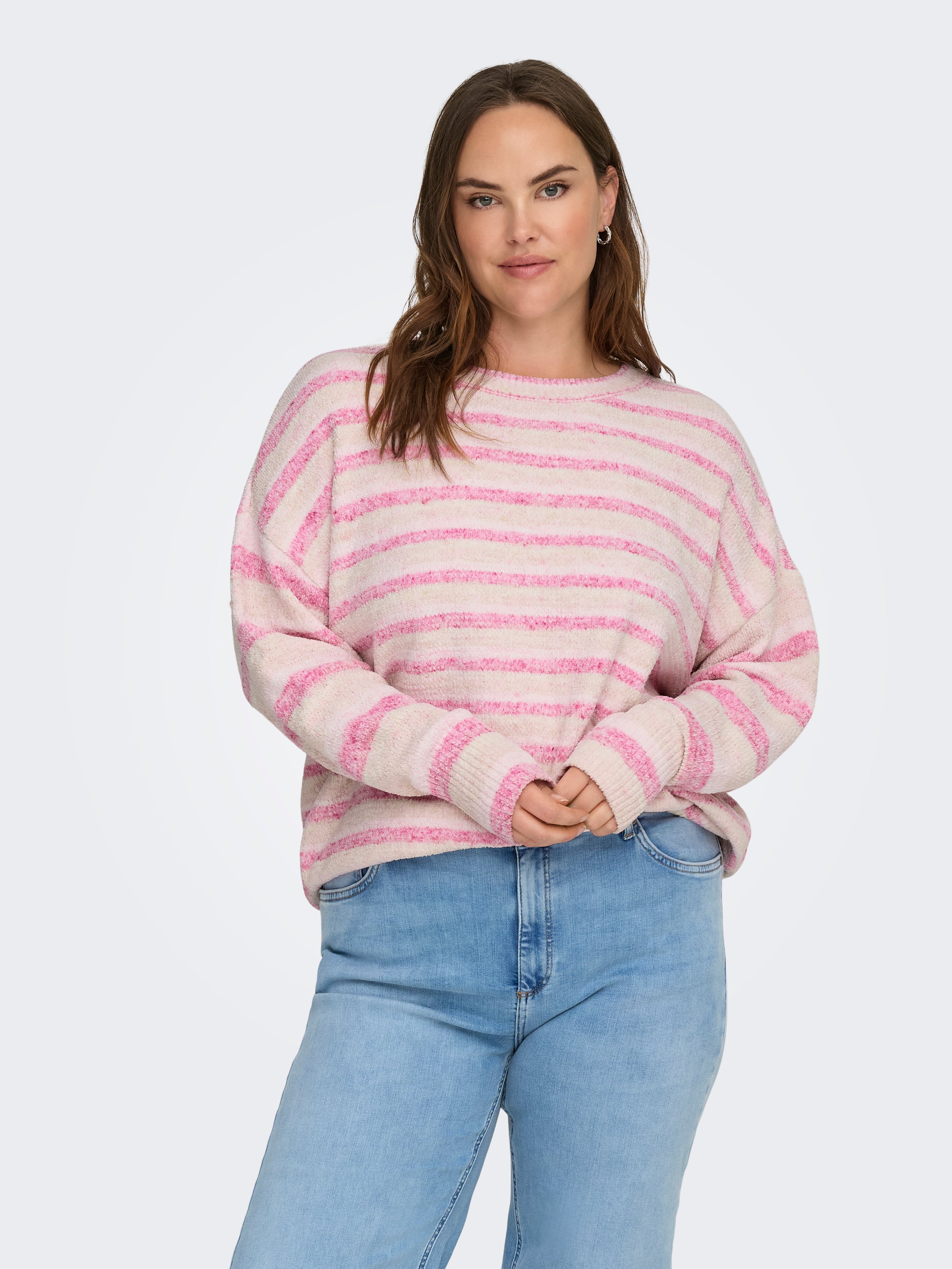 Gebreide Trui met Streepdessin Roze/Birch van Only Carmakoma