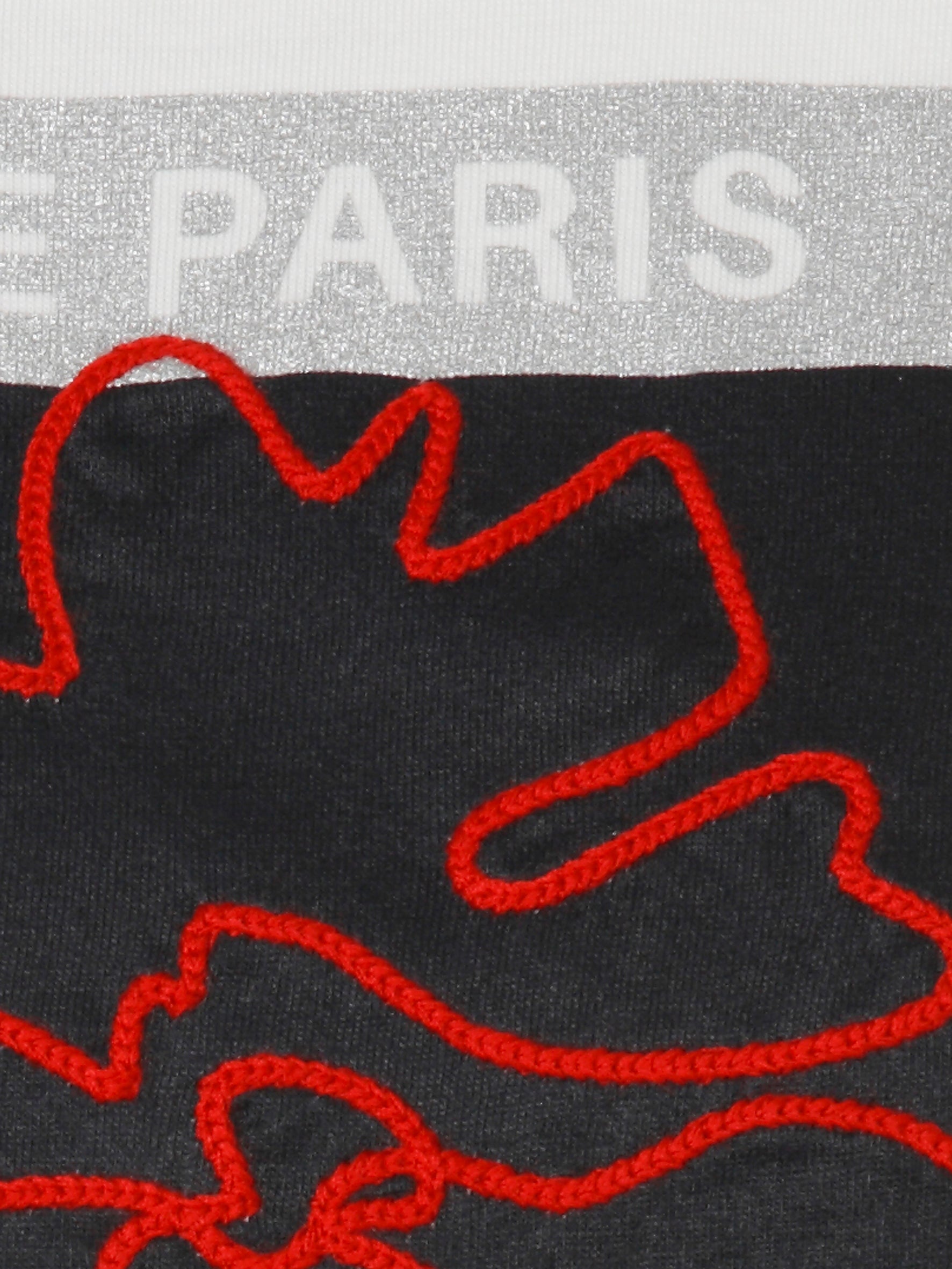 - Design - Grafische print met rode stiksels en tekst 'PARIS'