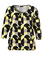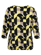 Dit T-shirt van Via Appia Due kenmerkt zich door een geometrisch dessin in de kleuren zwart, geel, wit en taupe. Het bovenstuk heeft driekwart mouwen en een ronde halslijn. De subtiele plooien aan de voorzijde geven dit casual T-shirt een losvallende fit, waardoor het comfortabel zit. Dit veelzijdige shirt is een ideale basis voor je dagelijkse look.