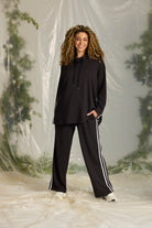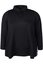 Deze zwarte trui van Zhenzi heeft een lange, wijde pasvorm. De sweater is uitgevoerd met lange mouwen en een hoge halslijn met een tunnel en verstelbaar trekkoord. Langs de zijnaden van deze Zhenzi sweater zijn twee contrasterende witte strepen verwerkt. Je hebt ook een handige steekzak aan de voorkant. Dit is een comfortabele keuze voor jouw casual look.